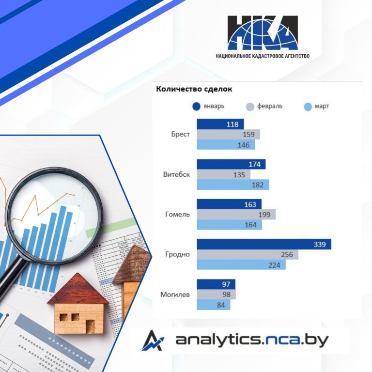 - Гомель и Витебск демонстрируют стабильность: ежемесячно здесь регистрируют 160-180 сделок.