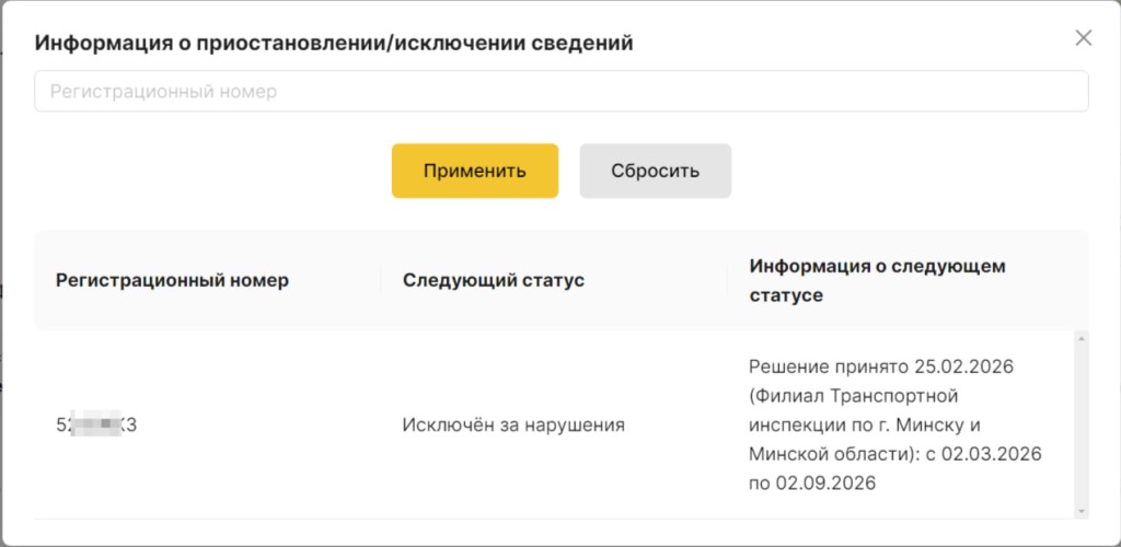 Согласно Указу Президента №32 и Постановлению Совета Министров №565, исключение перевозчика из реестра автоматически влечет за собой вывод из оборота всех его автомобилей на тот же срок – полгода они не смогут использоваться для работы в такси.
