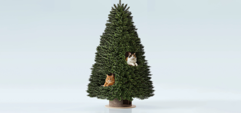 Отличная новость для всех, у кого есть домашние животные. Теперь на новогодние праздники не нужно переживать за елку и за то, что пушистики ее уронят. Ведь в продаже появилась новинка от компании Meowpy. Это елка, которая одновременно служит украшением дома, домиком для котиков и когтеточкой.