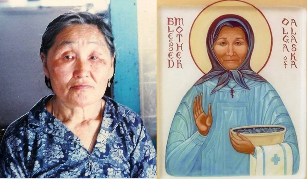 И это – праведная Ольга О`Майкл Кветлукская (Аляскинская). Первая святая из коренного населения эскимосов-юпиков, коренных жителей Аляски. Она жила с 1916 по 1979 годы. На местном языке ее звали Арсамкук. Ольга знала наизусть молитвы и песнопения на церковнославянском и на языке юпик. Молитвами она воцерковила мужа Николая, который впоследствии стал иереем. Родила 13 детей, 5 из них умерли, но 8 удалось вырастить и отправить в люди.