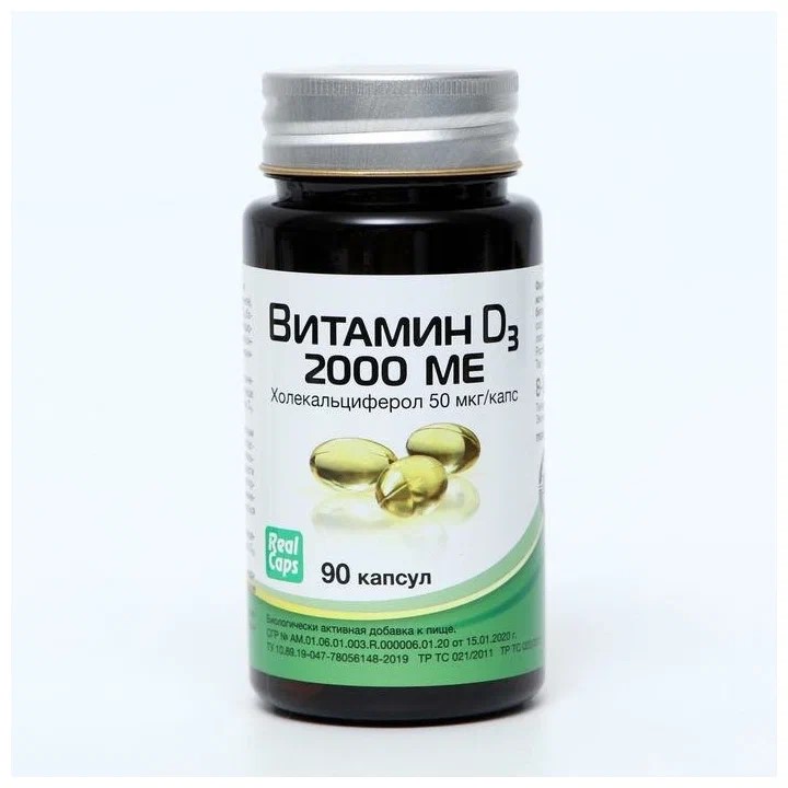 - БАД «Витамин D3 2000 МЕ (холекальциферол)» (производитель: АО «РеалКапс»).